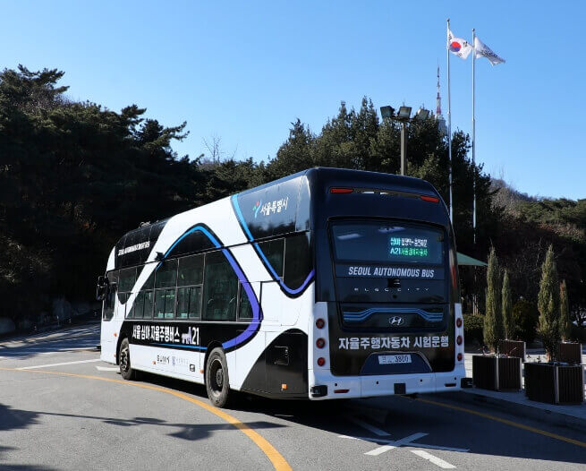 자율주행 버스의 안전한 운행을 위해, 서울시는 중앙 버스 전용차로구간 신호등 제어기 총 59곳에 자율주행차를 위한 새로운 통신 시스템을 설치했습니다.